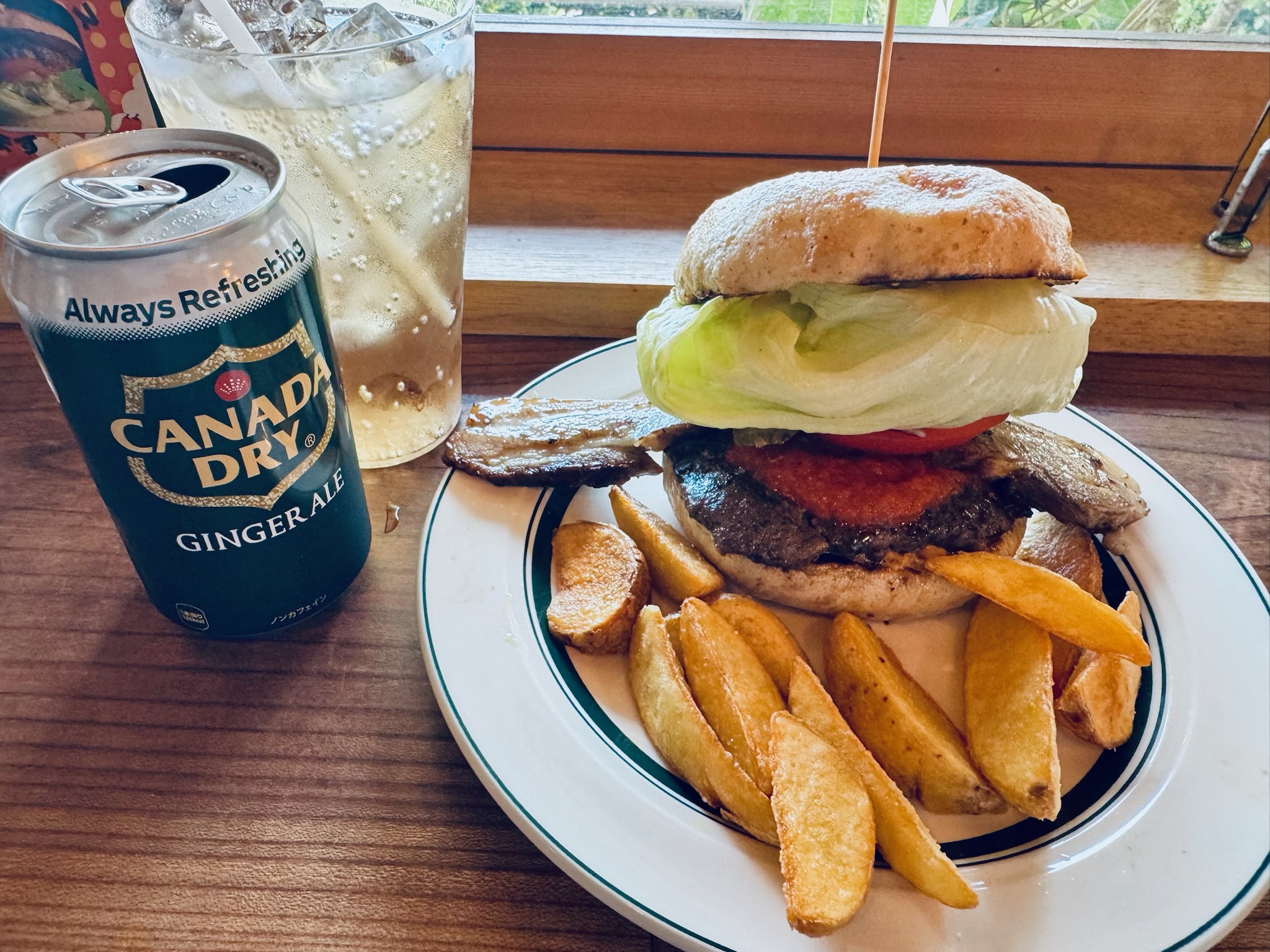 セットのポテトは細めのタイプで、外はカリッと中はホクホク。ケチャップをつけなくても十分美味しい。ドリンクはジンジャーエールをチョイスしましたが、バーガーとの相性は言うまでもありません。