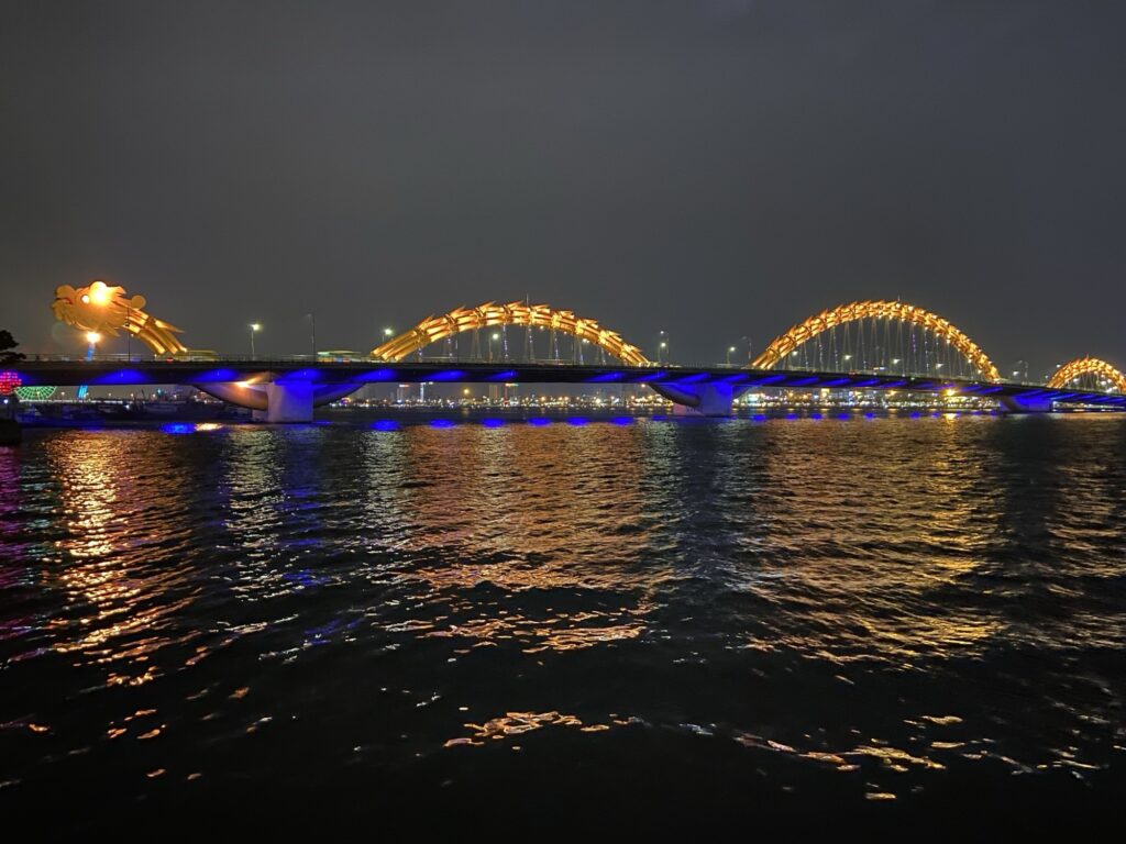 市内ではドラゴンブリッジも有名です。夜になると、ドラゴンの形をした橋が光り、週末には火を吹くショーまであります。大人も子どもも目を丸くして見てしまいました。