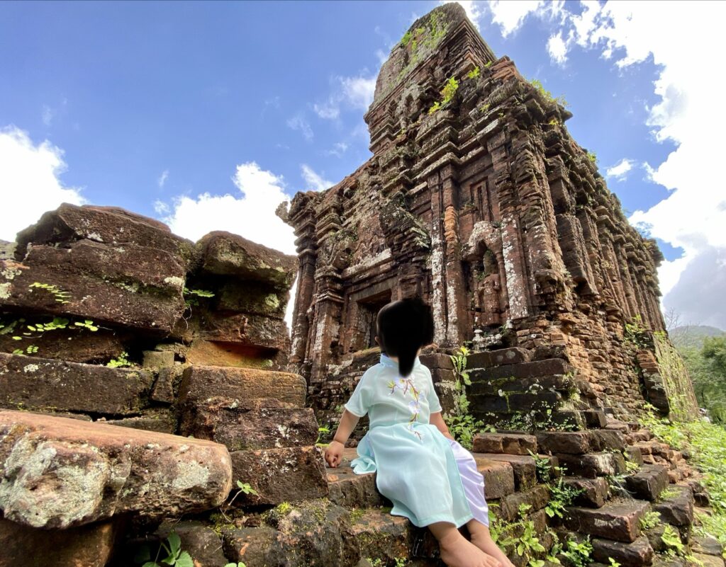 ミーソン遺跡は、ダナンから車で約1時間半。ここはチャンパ王国の聖地と呼ばれる場所で、赤レンガの遺跡がジャングルの中に並んでいます。大人が見ても迫力がありますし、子どもにとっても「秘密基地」のように感じられるようでした。