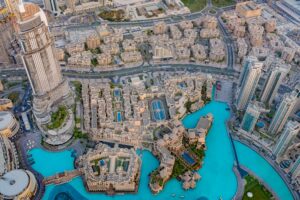 ドバイで外せないのがブルジュ・ハリファへの訪問です。高さ828メートルを誇るこの超高層ビルは街のどこからでもその尖塔が見えるほど象徴的な存在で、私は市内観光ツアーのオプションで展望台へ上がりました。エレベーターは非常に速く、数十階分を短時間で駆け上がるため耳が少しつまるような感覚を覚えます。展望デッキからの眺めは圧巻で、砂漠やペルシャ湾まで含めた大パノラマが広がります。夜には下方で行われる噴水ショー(ドバイ・ファウンテン)を見下ろすこともでき、ライトと音楽が織りなすショーを高所から眺める特別感は格別でした。実際に上ることで、ドバイが「空間の演出」にとても力を入れている都市だと強く感じました。