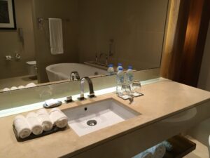 私が宿泊したのはドバイマリオットホテルです。ホテル到着時にまず感じたのはロビーの広さと落ち着いた雰囲気で、短い滞在でも十分にくつろげる環境でした。ここで役立ったのがMarriott Bonvoy アメックスのカードで、提示することでいくつかの恩恵を受けられました。具体的には、チェックイン時に空室があれば広めの客室へアップグレードしてもらえたこと、ホテル内の専用ラウンジを利用させてもらい軽食や飲み物で休めた点、そして手続きがスムーズだった点です。ラウンジでは出発前に軽く食事をとったり、帰着後に冷たい飲み物でリフレッシュしたりできて、短時間滞在の疲れを和らげるのにとても助かりました。実例を一つ挙げると、通常のシングルからコーナールームへのアップグレードで窓から見える摩天楼の眺めが格段に良くなり、夜景を楽しみながら休めたことが印象に残っています。