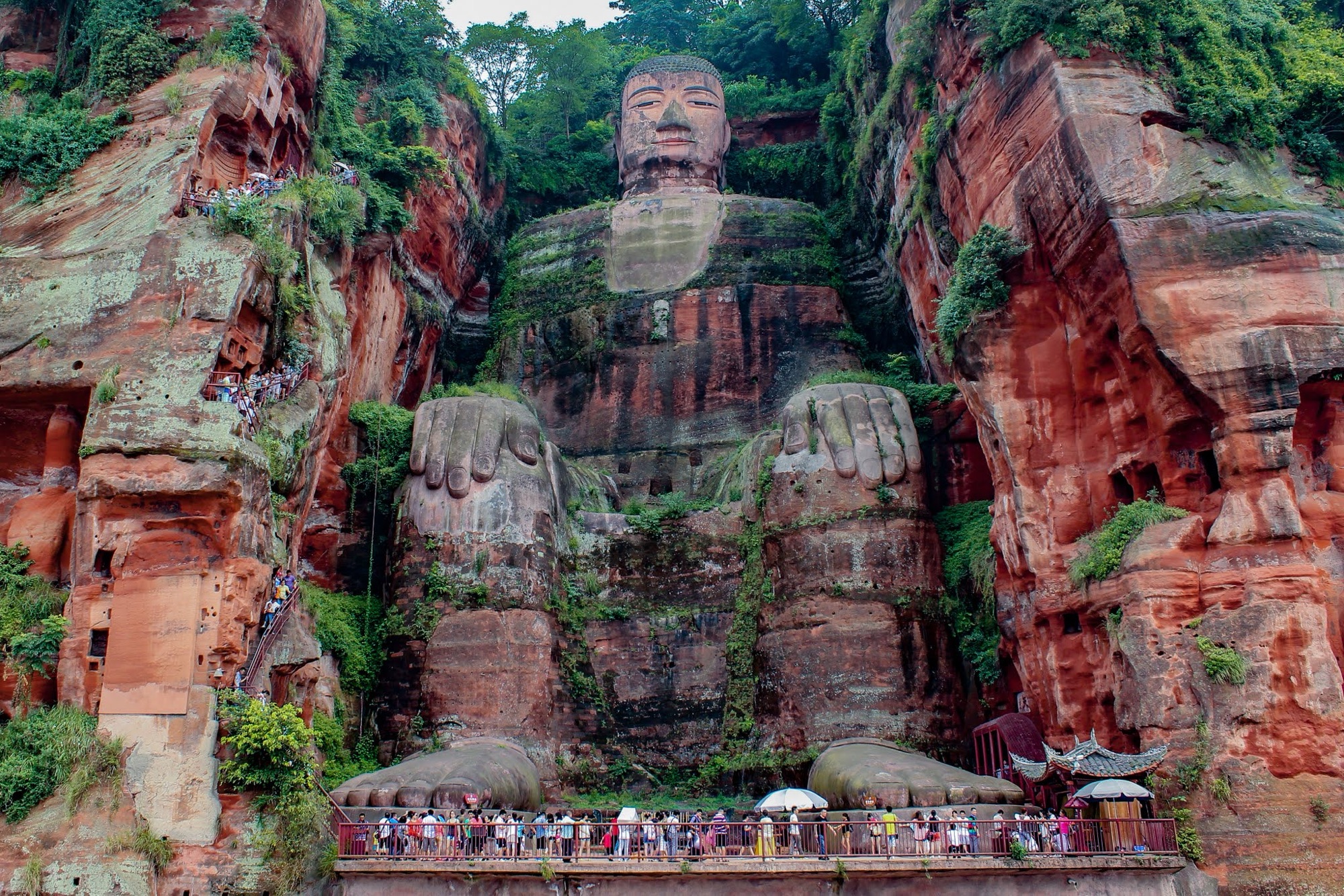 中国の四川省にある楽山大仏は、世界でも屈指の巨大な石仏として知られています。唐代に約90年をかけて造られたと言われ、高さは71メートル。肩幅だけでも約28メートルあるので、人が近づくとその大きさに圧倒されてしまいます。実際に目にすると、まるで山そのものが仏像になったかのような迫力がありました。