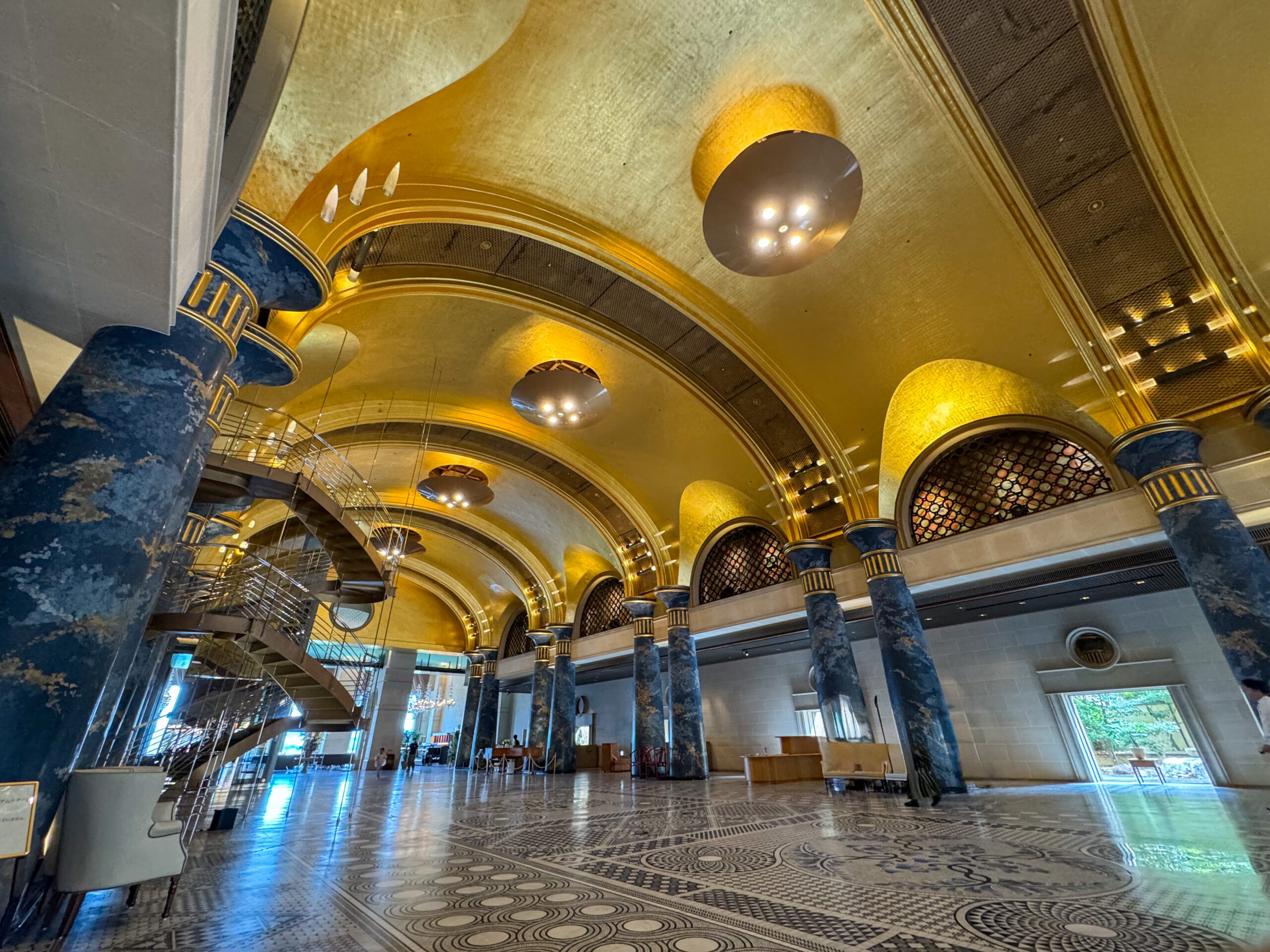 - 金箔ロビー:天井と柱の輝きが圧巻。MVのメイン背景になった場所。