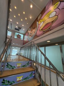 朝、車で大阪を出発して姫路港へ向かいました。高速道路を使えば約2時間ほどで到着します。港に着いた瞬間、目を引いたのがポケモンフェリー。船体にはピカチュウやリザードンなどのキャラクターが描かれていて、見ているだけでワクワク。子どもたちが写真を撮ってはしゃいでいる姿も微笑ましかったです。