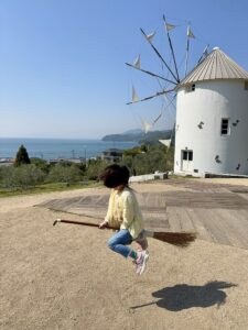 - オリーブ公園:映画『魔女の宅急便』のロケ地として有名な場所。白い風車と青い空、そして一面に広がるオリーブ畑が絵のように美しいです。レンタルできるほうきを持ってジャンプすると、まるで本当に空を飛んでいるような写真が撮れるのも人気の理由。敷地内にはオリーブソフトや石けん作り体験もあります。